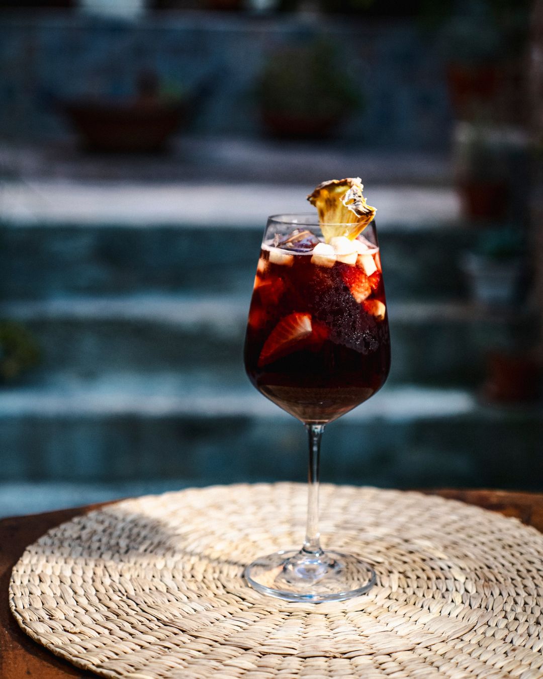 2. Garnish with cubed, seasonal fruit and herbs, like mint.